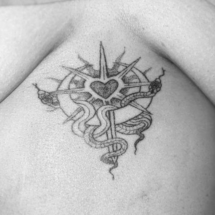 “I have about 7-9 tattoos from Harmony. Most were on a whim, but I have pretty much been there since the beginning of their tattooing journey. We would randomly just choose a tattoo to do while hanging out and it has been amazing seeing their skill improve from my first tattoo to the newest one. I have my first tattoo from them being a bumble bee on the cuff of my ass, and it's a beauty, but comparing it to my snake heart chest piece that is most recent? WOW. No notes. I literally brag about all of the tattoos I got from them, but the chest piece has become my favorite (next to the Courage the Cowardly Dog tattoo). They have always been really sterile, gentle and patient with so much attention to detail with each of my tattoo's. I regret not a single one and I only truly trust them with my tattoos at this point.”